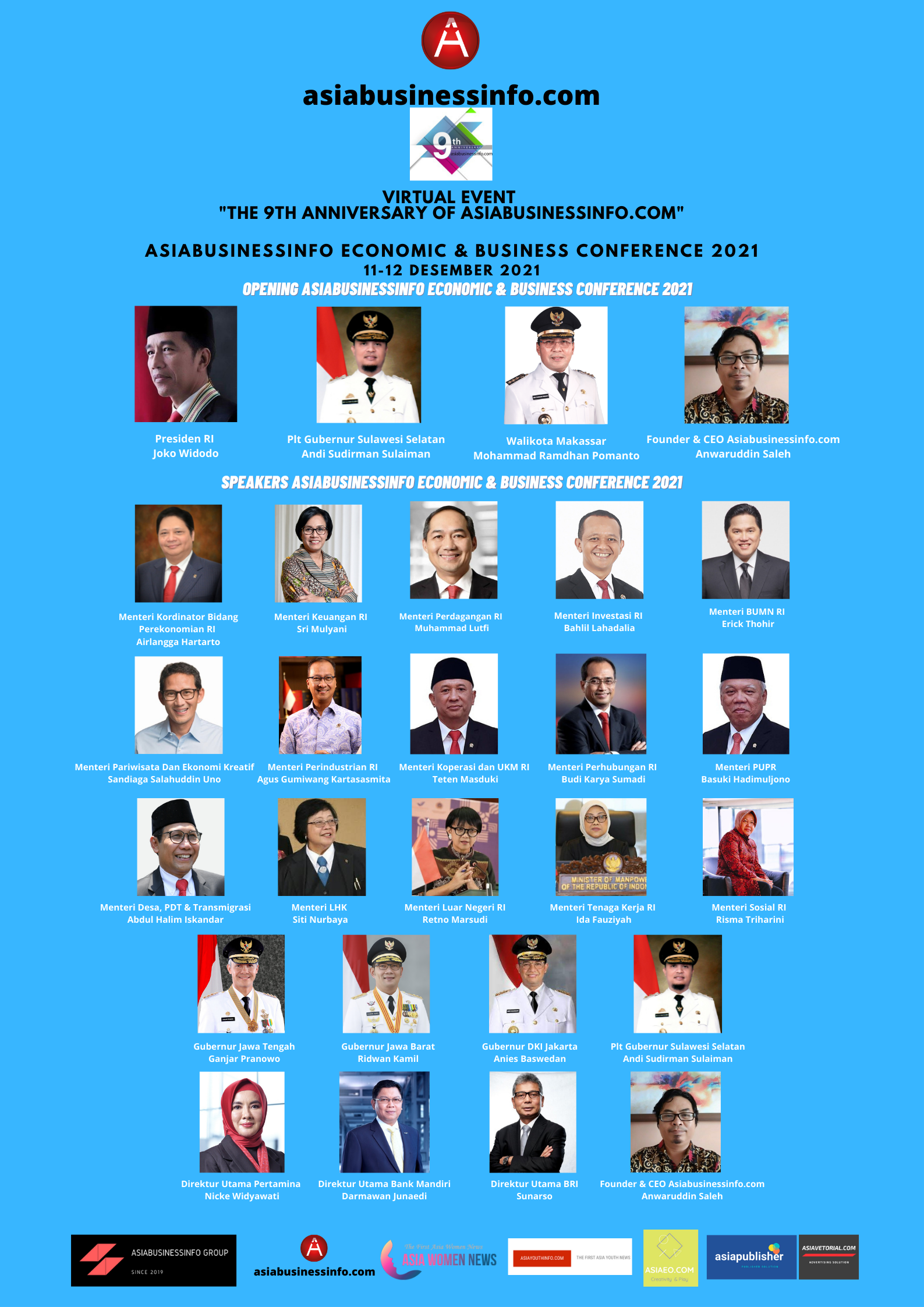 Opening Asiabusinessinfo Economic and Business Conference 2021 rencananya akan menghadirkan Presiden RI Joko Widodo, Plt Gubernur Sulawesi Selatan Andi Sudirman Sulaiman, Walikota Makassar Mohammad Ramdhan Pomanto dan Founder & CEO Asiabusinessinfo.com Anwaruddin Saleh.
