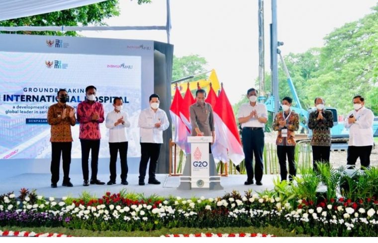 Denpasar, Bali, ABIM (27/12/2021) – Presiden Joko Widodo melakukan peletakan batu pertama atau groundbreaking Rumah Sakit (RS) Internasional Bali yang terletak di Kawasan Wisata Sanur, Kota Denpasar, Provinsi Bali, pada Senin, 27 Desember 2021. Dengan adanya rumah sakit tersebut, Presiden berharap warga negara Indonesia (WNI) tak akan lagi berobat ke luar negeri.