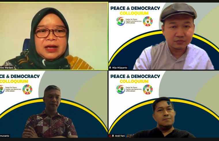 Makassar, Sulawesi Selatan, ABIM (26/1/2022) – Center for Peace, Conflict & Democracy (CPCD) Universitas Hasanuddin  atau Pusat Penelitian dan Pengembangan (Puslitbang) Perdamaian Konflik dan Demokrasi Unhas bekerjasama dengan Unhas SDGs Centre, dan Pendidikan dan Penerangan Ekonomi dan Sosial (LP3ES) dalam menyelenggarakan Peace & Democracy Colloquium Seri 8 pada jam 14:00 WITA, Selasa tanggal 25 Januari 2022.