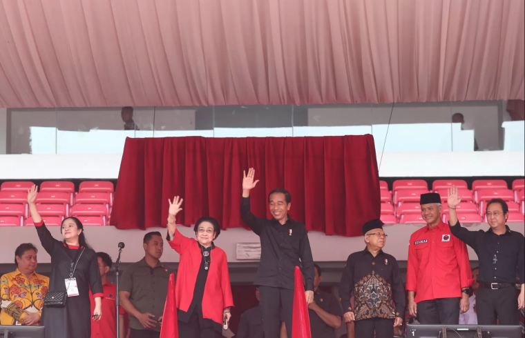 “Saya ulangi, tadi telah kita dengarkan calon presiden dari PDI Perjuangan Bapak Ganjar Pranowo,” kata Jokowi di Stadion Utama GBK, Senayan, Jakarta, Sabtu (24/6/2023).