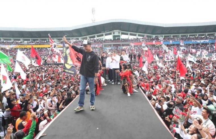 Begitu juga saat dia berorasi, puluhan ribu massa itu kompak menyerukan nama Ganjar sembari mengangkat tiga jari.“Rasa-rasanya kalau Jawa Timur seperti ini, kita akan menang satu putaran,” ujar Ganjar yang disambut riuh tepuk tangan.