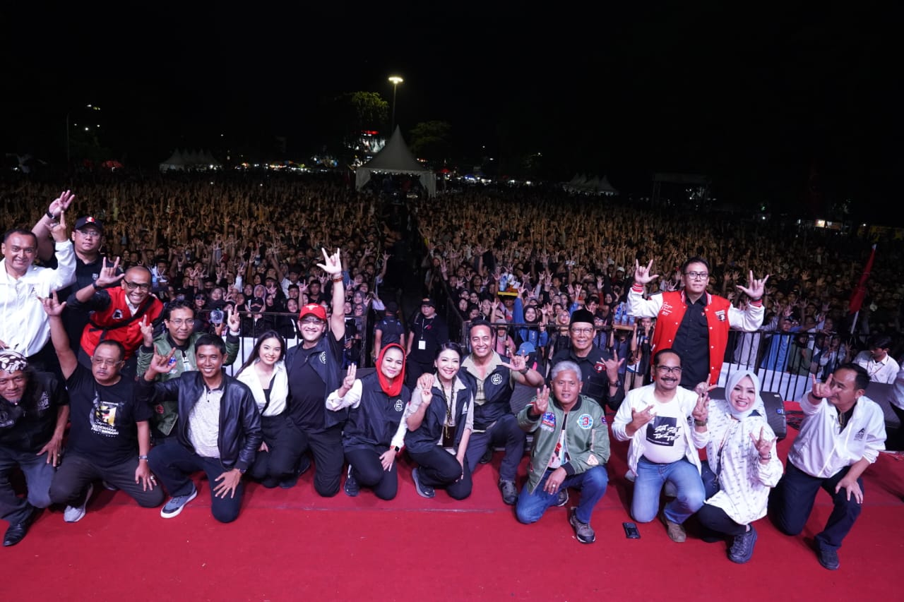 Grup musik Slank sebagai bintang tamu tak ketinggalan meminta komitmen Ganjar untuk menjaga demokrasi, tidak melanggar etika saat menjabat presiden.