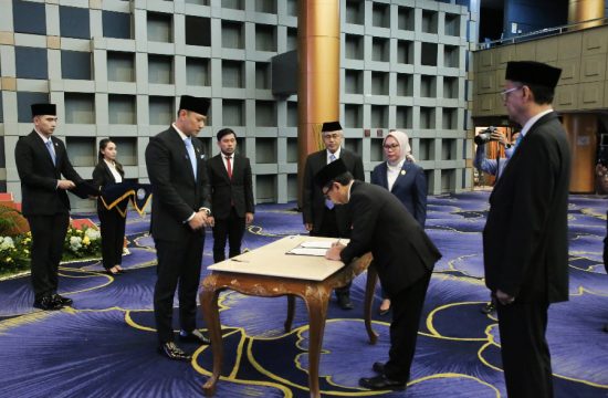 Turut mendampingi Menteri Koordinator Bidang Infrastruktur dan Pembangunan Kewilayahan (Menko Infra) Agus Harimurti Yudhoyono yaitu Wakil Menteri BUMN Kartika Wirjoatmodjo danDirektur Utama PT Pelni Tri Andayani.(ABIM)