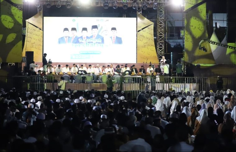 Suasana penuh haru dan syahdu tercipta ketika doa-doa dan pujian kepada Rasulullah SAW bersahut-sahutan, menggema di udara, menyatu dengan kesejukan malam. Ribuan wajah menengadah, bibir bergerak serempak menyebut nama junjungan.